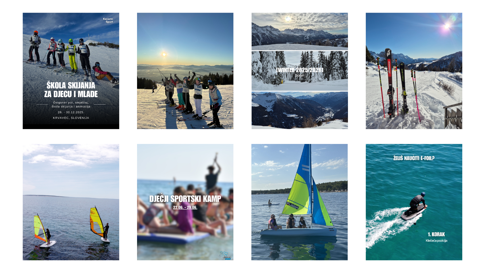 i ljetne (sportski kampovi na otoku Pagu, windsurf, kajak, penjanje, timske igre).