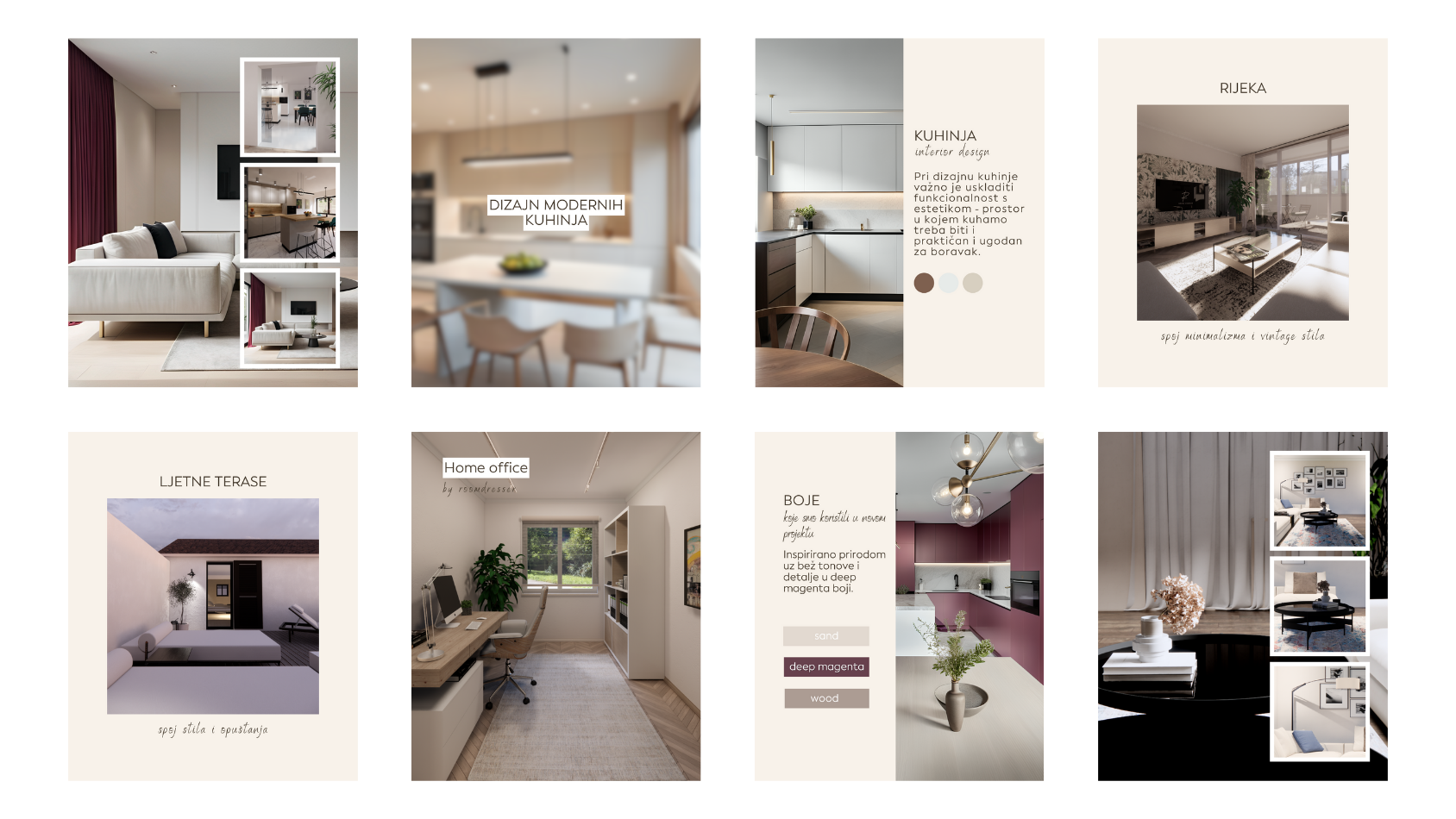 Studio posvećen dizajnu interijera i stvaranju funkcionalnih, estetski usklađenih prostora za domove i poslovne objekte. Fokus je na planiranju rasporeda, izboru materijala, boja i namještaja te izradi cjelovitih rješenja prilagođenih željama i načinu života klijenata.